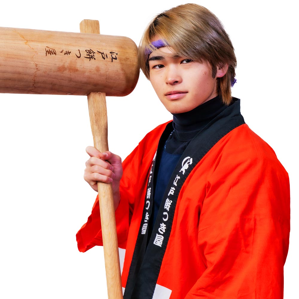 ただ餅つきをするだけじゃなく、皆さんに楽しんで頂く事をモットーに日々励んでおります!「とにかく盛り上げて欲しい!」そんな要望は僕にお任せ下さい!